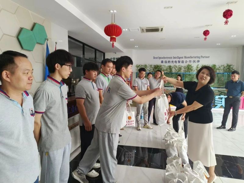 2023年8月1日上午,安巢經開區管委會副主任劉曉利,社會發展局局長徐勇和安巢總工會副主席黃存學一行來到中顯,對堅守在一線的職工們表示慰問,安巢經開區管委會副主任劉曉利對于大家在高溫天氣依然堅守在崗位表示深切關心和贊揚,提醒大家在工作的同時務必注意身體健康,并鼓勵大家干好工作,確保企業正常生產和持續發展,發揚頑強拼搏、艱苦奮斗、勇于創新的勞模精神。劉主任的講話鼓舞人心,中顯一線員工們深受感動和鼓舞。隨后,安巢管委會和總工會領導們為中顯一線員工們逐一送上“清涼大禮包”。
