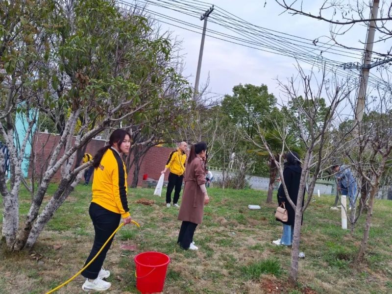 在植樹節到來之際,各部門的人員紛紛行動起來,有的挖土,有的扶苗,有的提水,有的澆苗,有的清理枯枝,有的清除雜草,場面好不熱鬧。