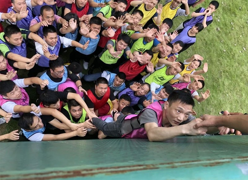 下午,在拓展教練的帶領下,大家分為6支小分隊,通過集思廣益,每隊都在二十分鐘內確定了自己的隊名、隊訓和隊旗。分別進行了群龍取水、翻越“畢業墻”等團隊協作小游戲。在拓展過程中,所有隊員都充分展示了勇于挑戰的奮斗精神、團隊的合作創新精神。