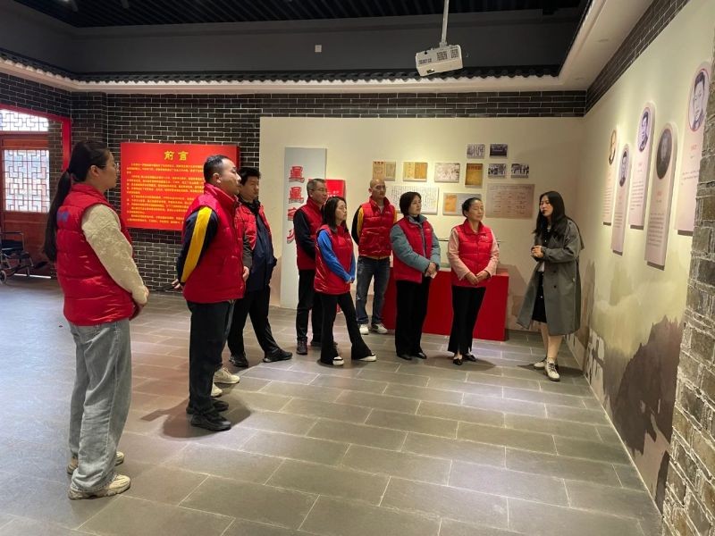 活動的第二站,我們來到了含山縣第一黨支部事跡陳列室。該陳列室位于省級美麗鄉村中心村福山村張什一自然村,我們首先參觀了室外的黨建長廊,瀏覽了從中共一大到中共二十大的歷次全會召開的情況,隨后來到陳列館內,館內講解員為我們作了詳細的介紹——分為前言、星星之火、崢嶸歲月、燎原之勢以及結束語這5個模塊,同時也向我們展示了原市委黨委珍藏資料以及革命歷史時期、建設發展時期的相關圖片、文字資料,呈現了含山縣第一黨支部的發展歷史,讓我們共同重溫了那段可歌可泣的歷史。最后,我們一同在陳列室前合影留念,結束此次的主題黨日活動。