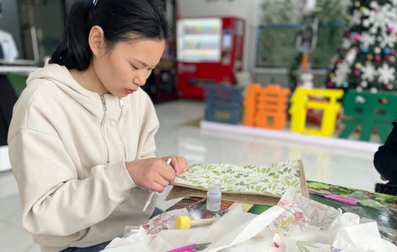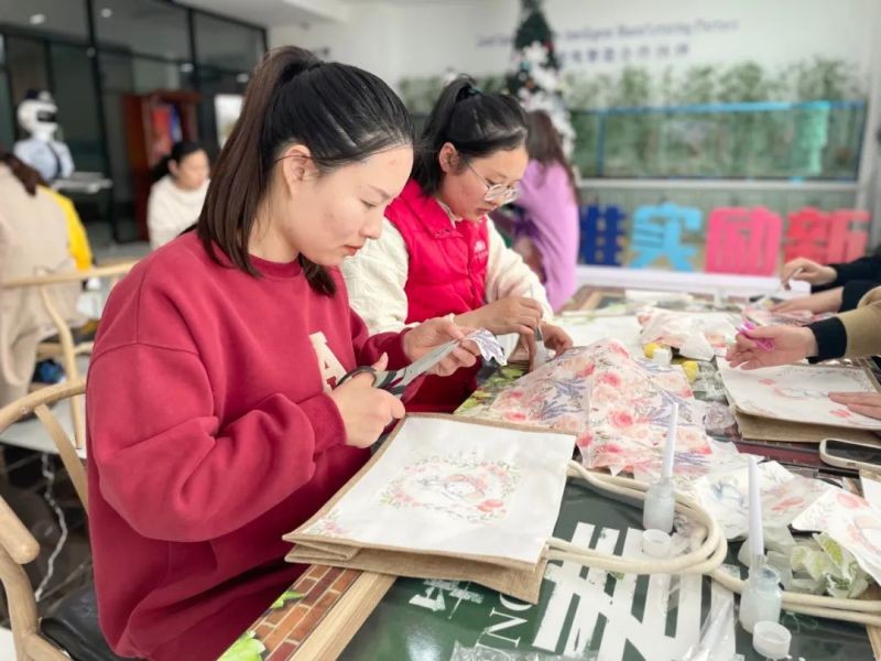 首先是DIY女神包包環節,中顯女神們用提前準備的制作工具,大膽地創新、精心地剪裁和用心地修飾,用愛制作出一個個精美包包。在創作過程中,大家專心投入在自己的作品中,專注且美麗,平靜且溫馨。