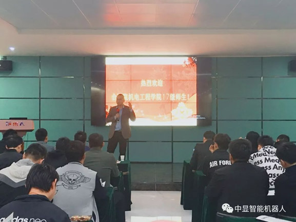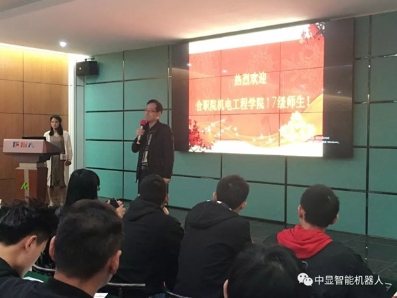 2018年10月20-21日,合肥職業技術學院機電工程學院副院長胡木林帶領機械、模具、機電專業210名師生開啟了中顯智能機器人之旅。為合肥職業技術學院與中顯智院的首班開學打下了良好的基礎,夯實了中顯智院第一批學生的良好開端,為中顯智能機器人及相關客戶的技能型專業人才深度儲備。中顯智能機器人有限公司總裁吳春庚和中顯教育副總經理徐英祥、人事行政部主管莢長慧等全程參與見習。